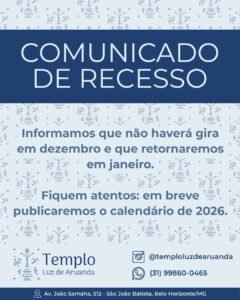Participe das Giras de Umbanda em BH. Veja o Calendário de Dezembro
